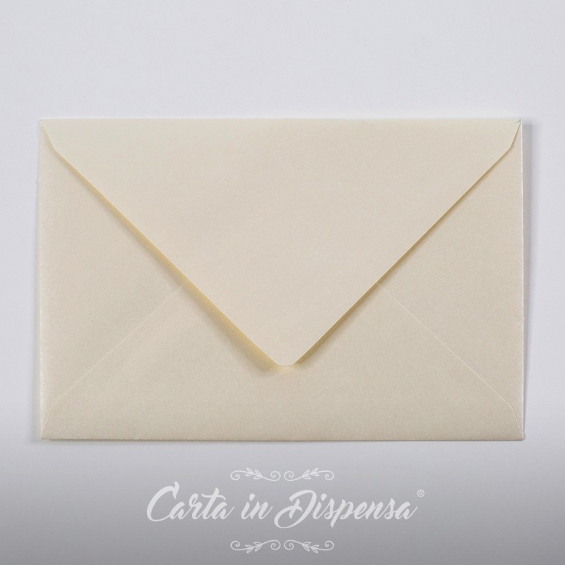 Buste rettangolari 12x18cm da 100g colore avorio, apertura con patella adesiva gommata.