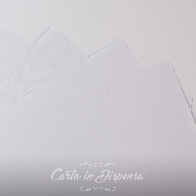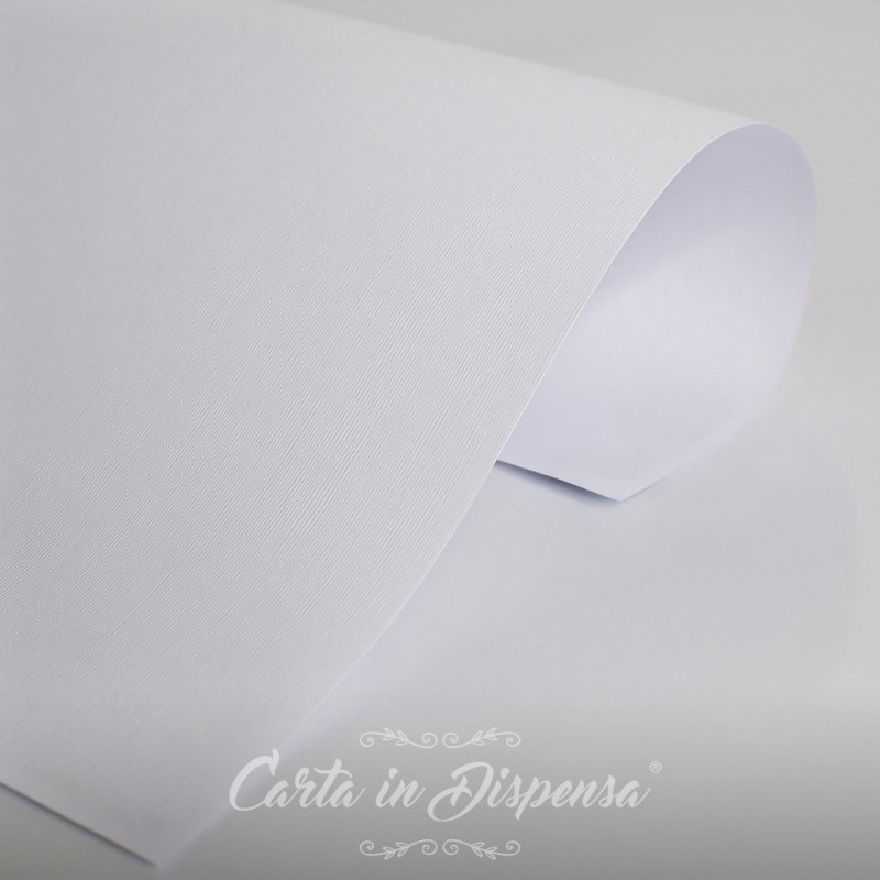 Carta goffrata effetto tela, molto simile alla trama del lino. Goffratura presente sul fronte. Carta molto versatile di buon livello.