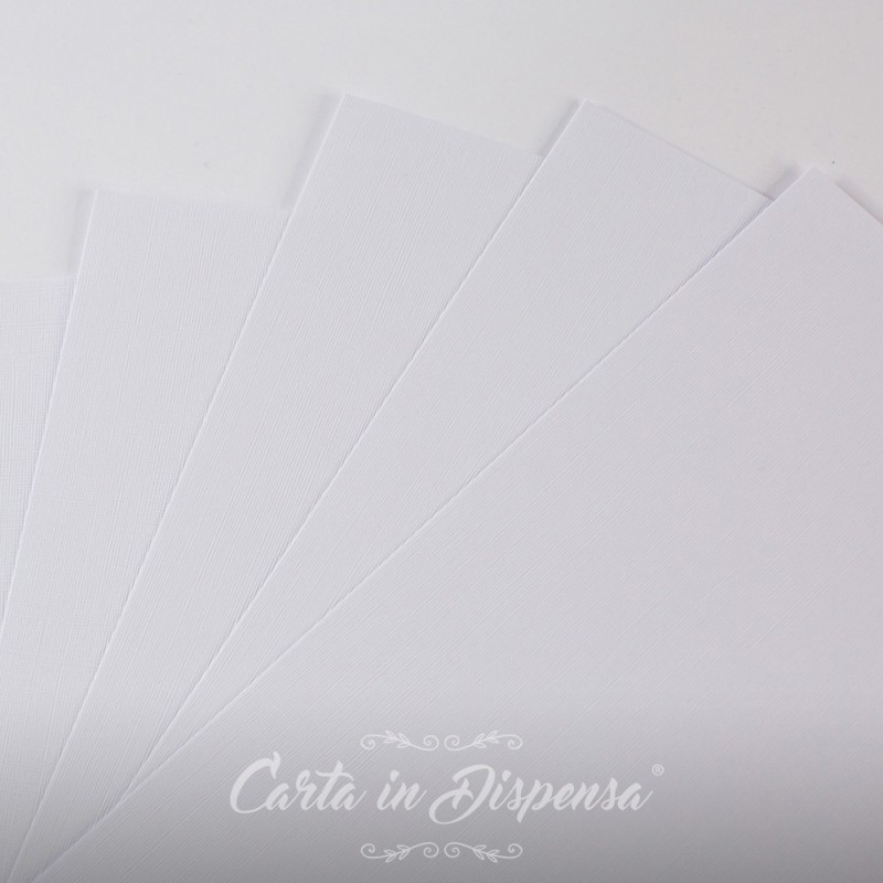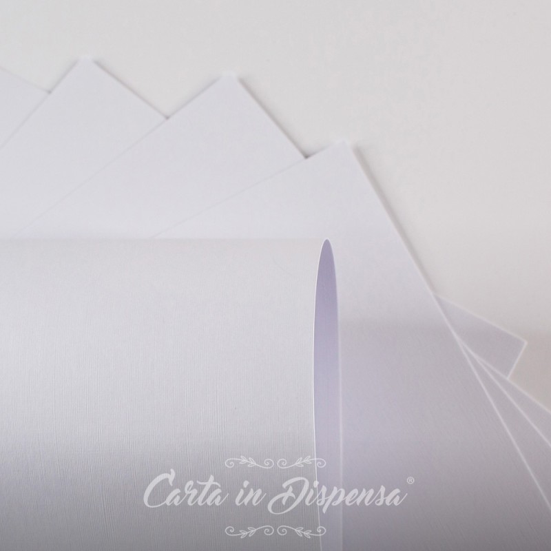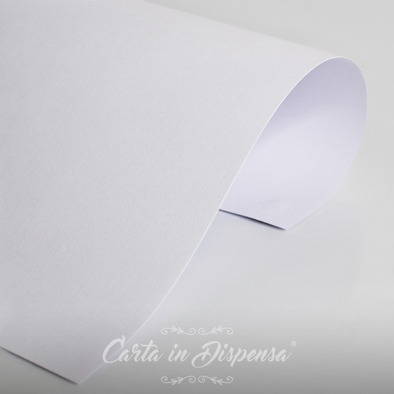 Carta goffrata effetto tela, molto simile alla trama del lino. Goffratura presente sul fronte. Carta molto versatile di buon livello.