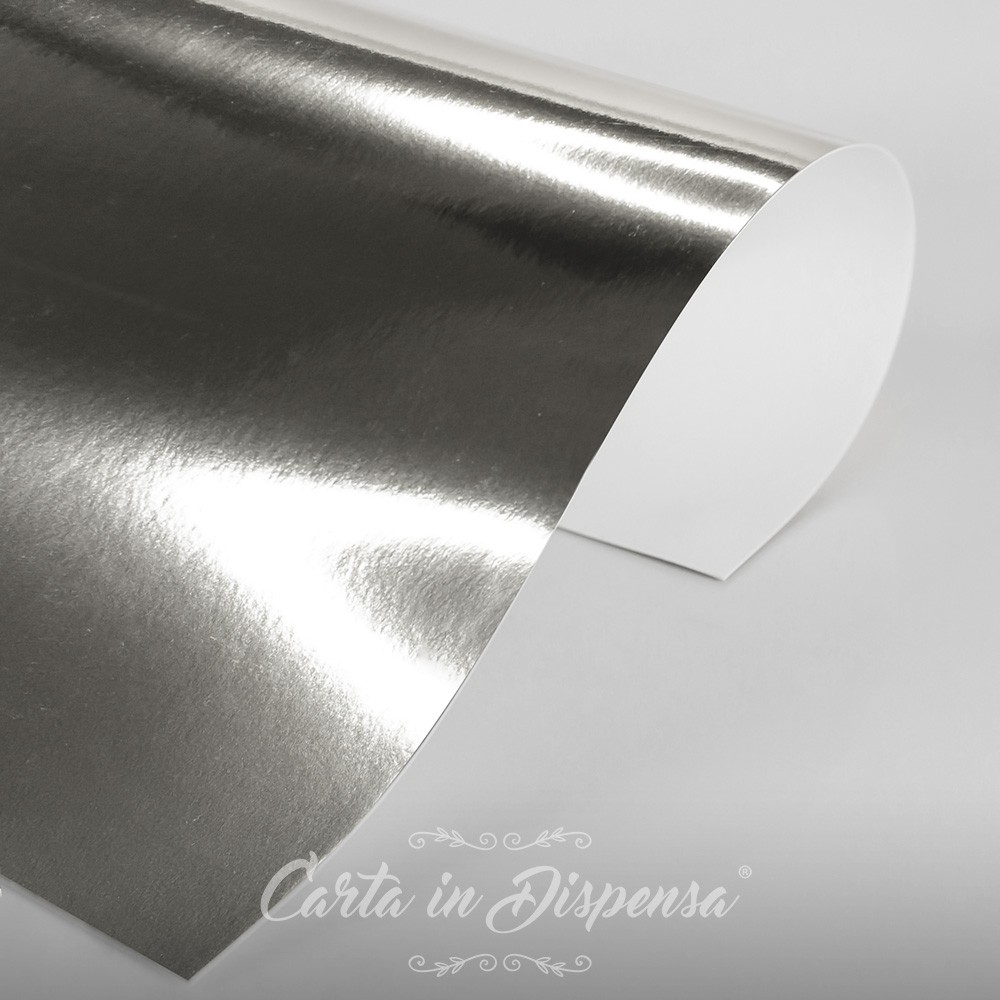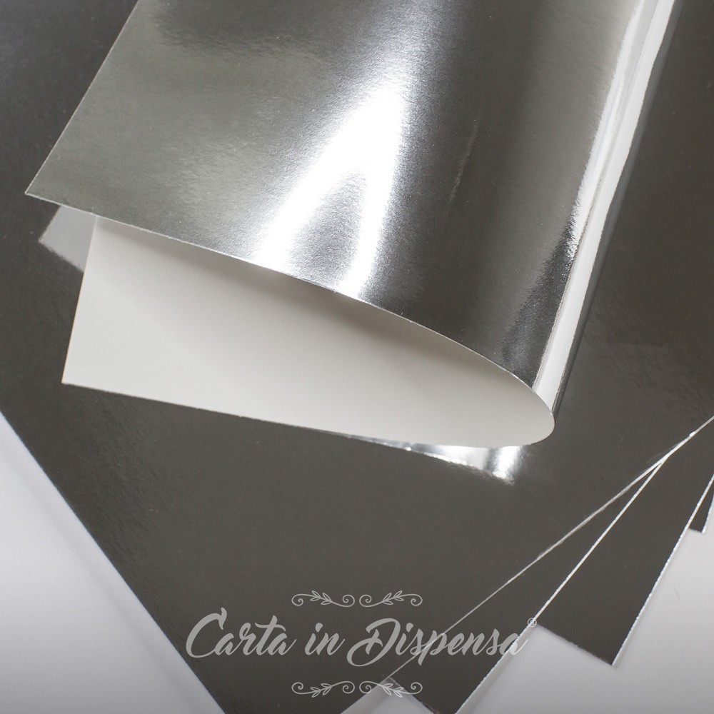 Realizzata con un film metallizzato argento, questa carta offre un aspetto brillante dai riflessi specchiati