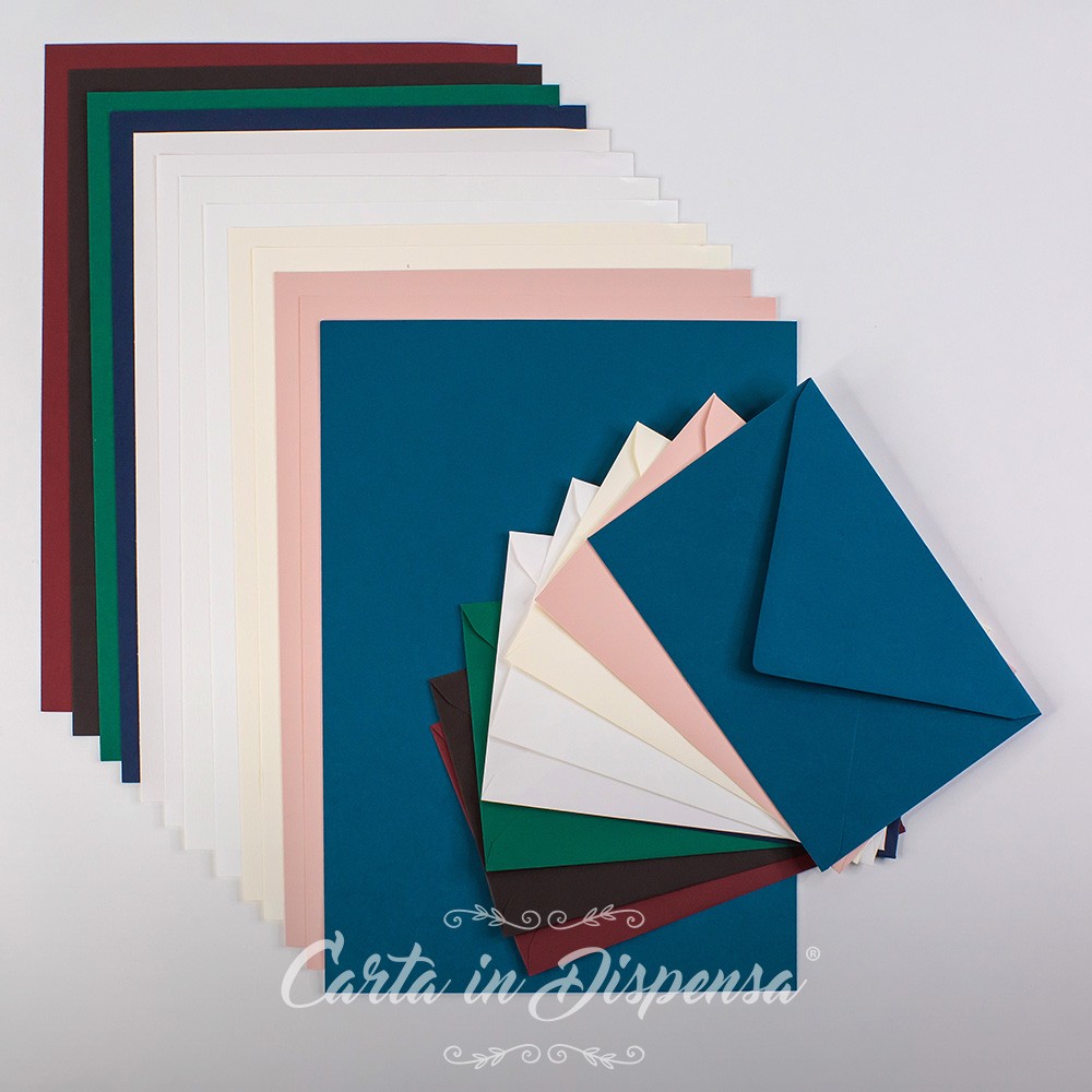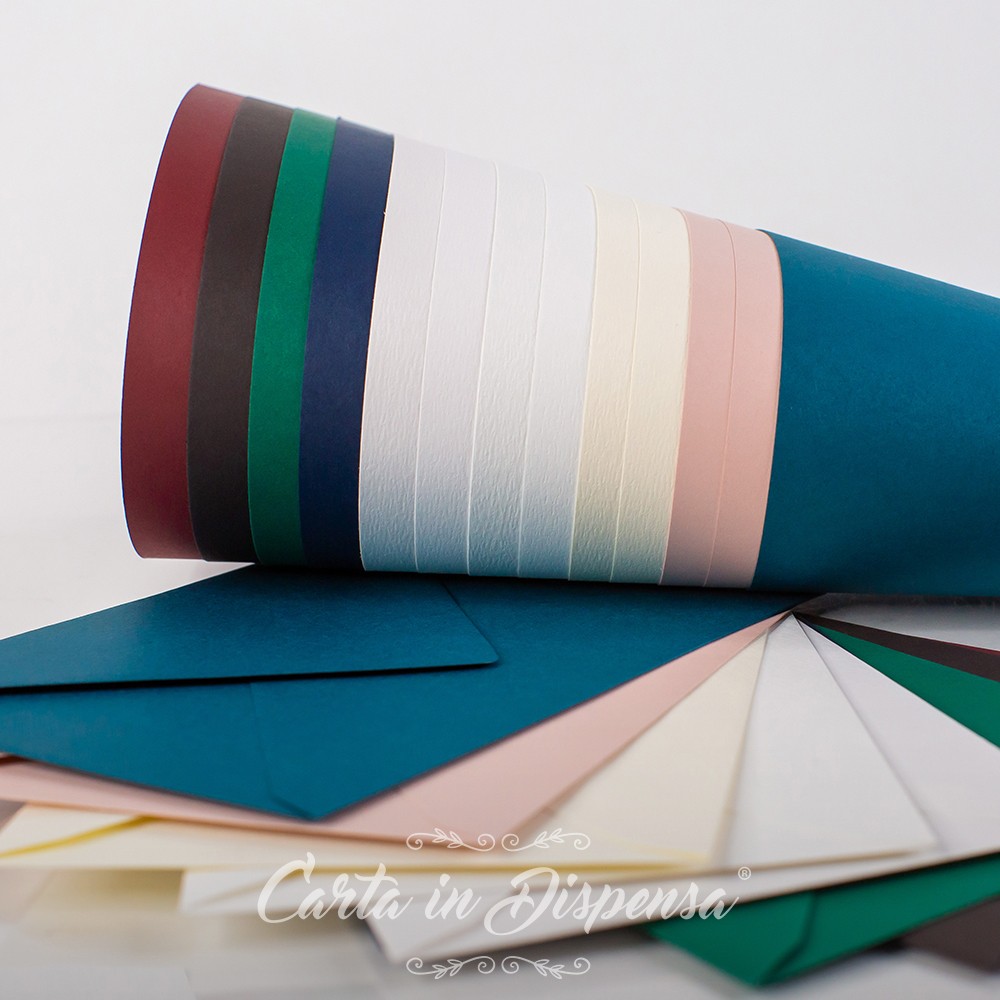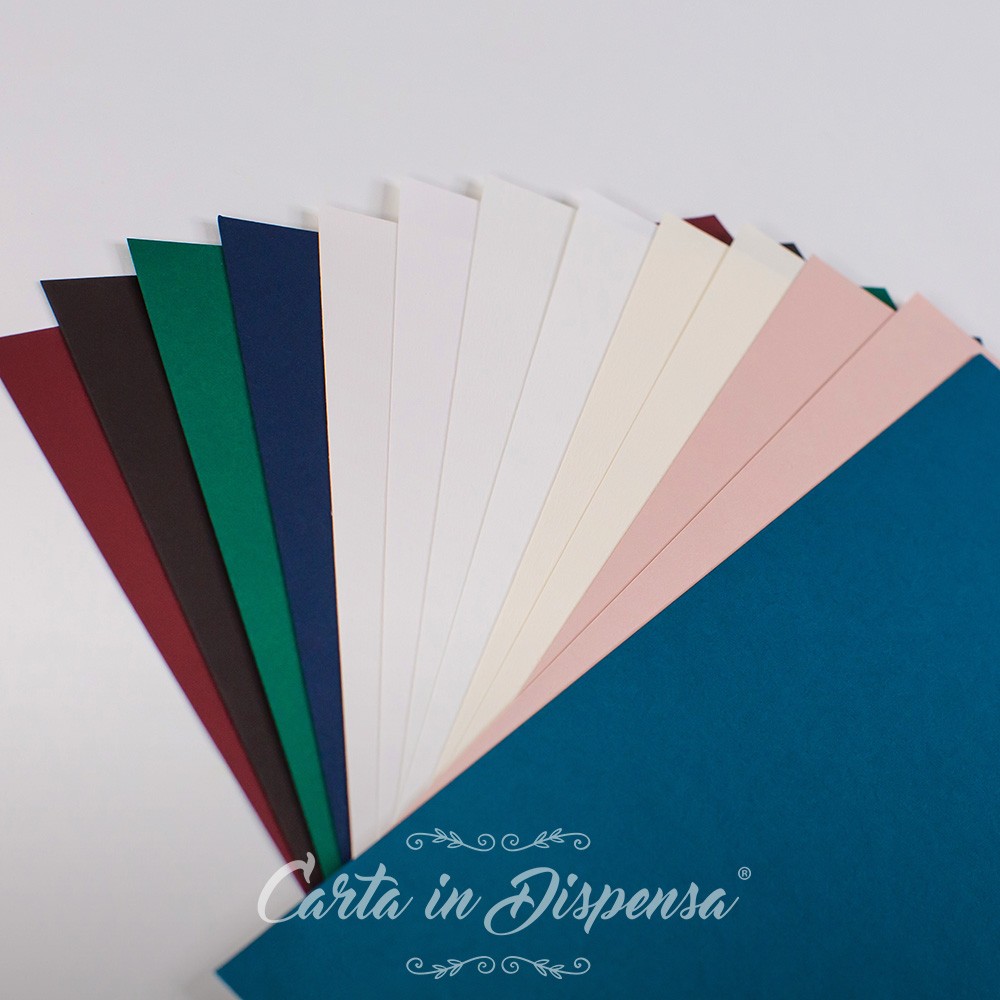 Carte ecologica sono create con fibre di recupero e cellulosa, colorazione ottenuta da pigmenti resistenti alla luce. Finitura liscia e opaca.