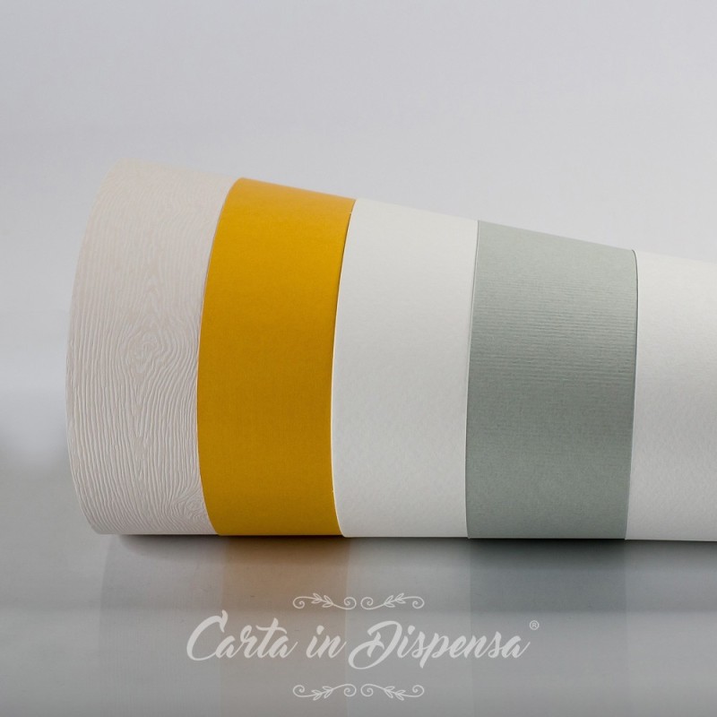 Carte ecologica sono create con fibre di recupero e cellulosa, colorazione ottenuta da pigmenti resistenti alla luce. Finitura liscia e opaca.
